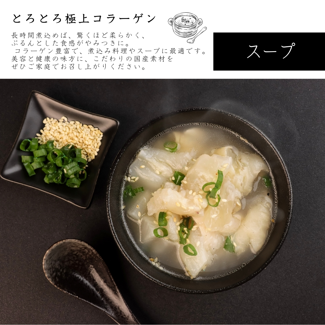A.旨味たっぷりコラーゲンも一緒にお好みの料理に入れていただきますと、コクも増しおすすめです。下処理済みですので醤油、味噌、カレーなどお好みの味付けでお召し上がりください。