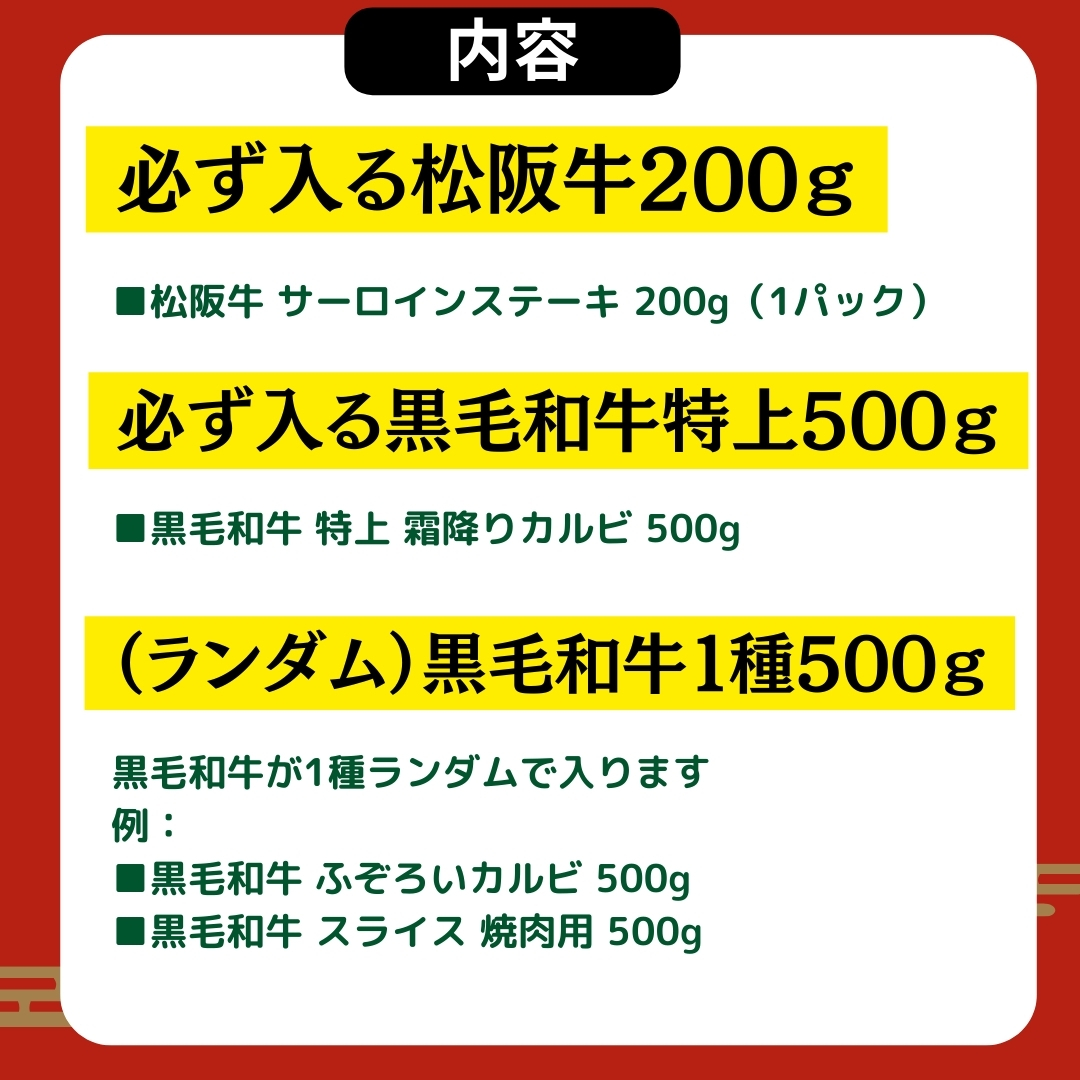 松阪牛のサーロインを確定でお届けし、さらに特上カルビや黒毛和牛の人気部位を詰め合わせました。