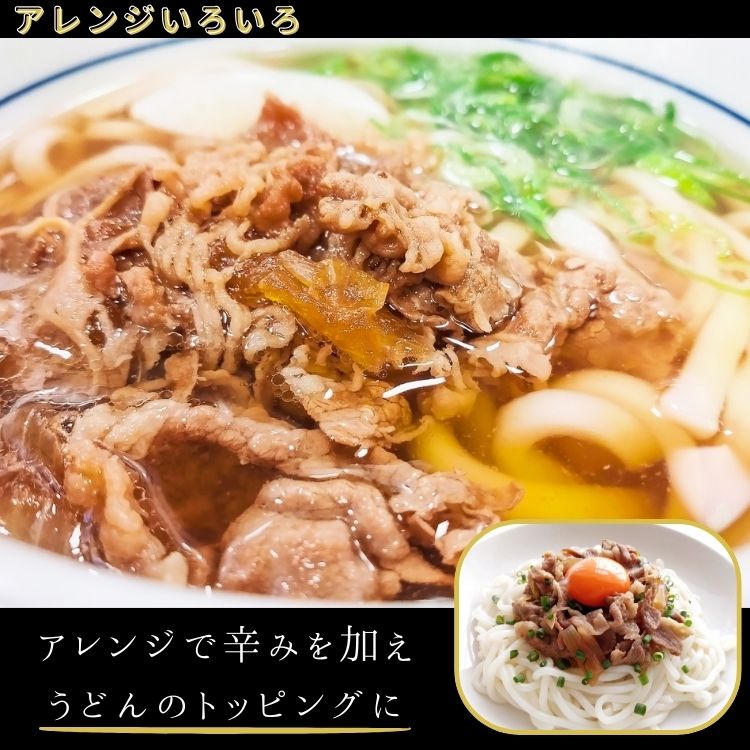 F1牛バラを1.5mmの極薄スライスし、たまねぎと加熱調理しました。黒毛和牛のような旨みがしっかりと染み出した汁がクセになる味わいです。たまねぎの甘味と牛の旨味を堪能できます。冷凍状態の袋のまま、100℃20分ボイル、または解凍後開封し充分に加熱してお召し上がりください。