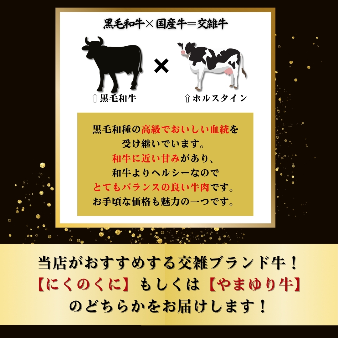 どちらも丁寧に育てられた国産ブランド交雑牛で、やわらかさとコクのある旨みが特長です。