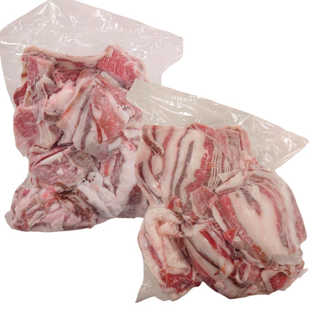 和牛と国産牛のいいとこどり!交雑牛のバラの薄切りスライスです。