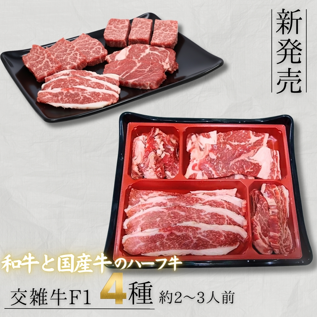 【送料無料】食べ比べ 国産 F1 交雑牛(和牛×国産牛)4種焼肉ギフト約2~3人前 約300g
