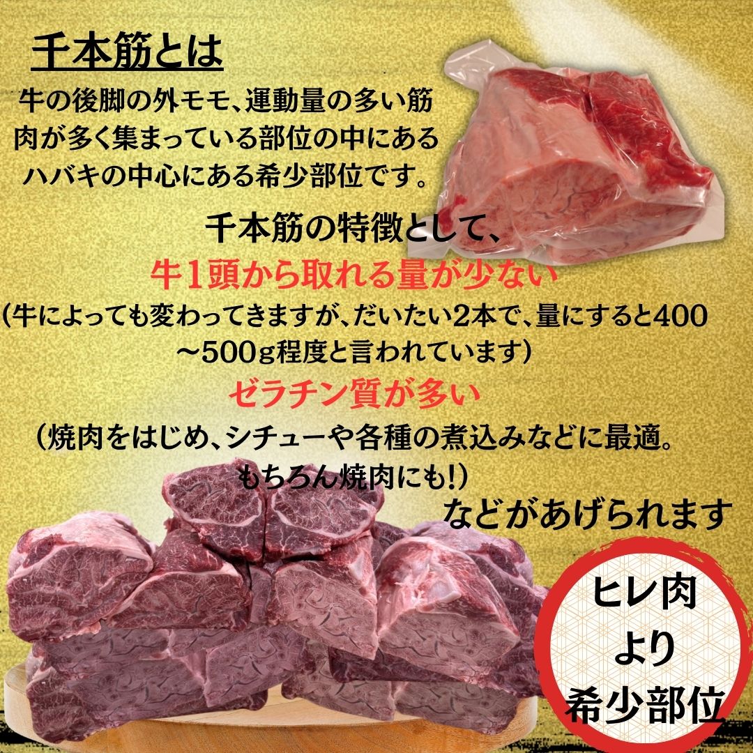 和牛好きにはたまらない、希少部位「和牛千本筋」を食べやすいハーフカットでご用意しました。コラーゲンをたっぷり含んだ千本筋は、じっくり煮込むことでとろけるような柔らかさに変わり、旨みがスープ全体に広がります。煮込み料理の主役としてはもちろん、家庭で作るカレーやシチューに加えるだけで、レストランのような深い味わいに仕上がります。