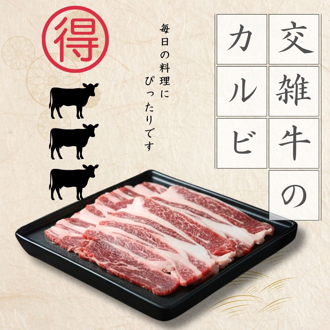 【赤身多めでヘルシー!交雑牛カルビ切り落とし500g】