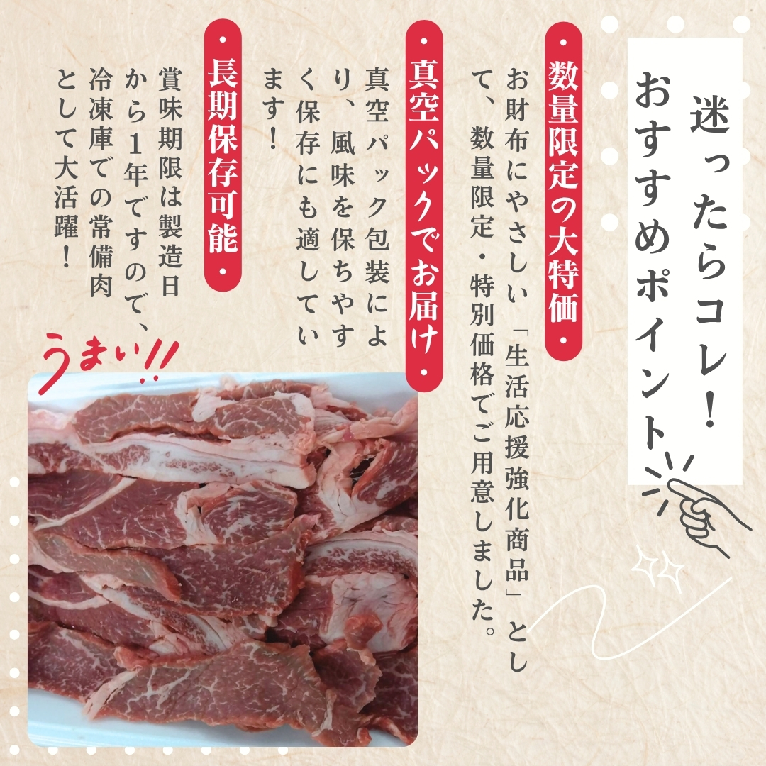 原材料:国産交雑牛(カルビ部位切り落とし)