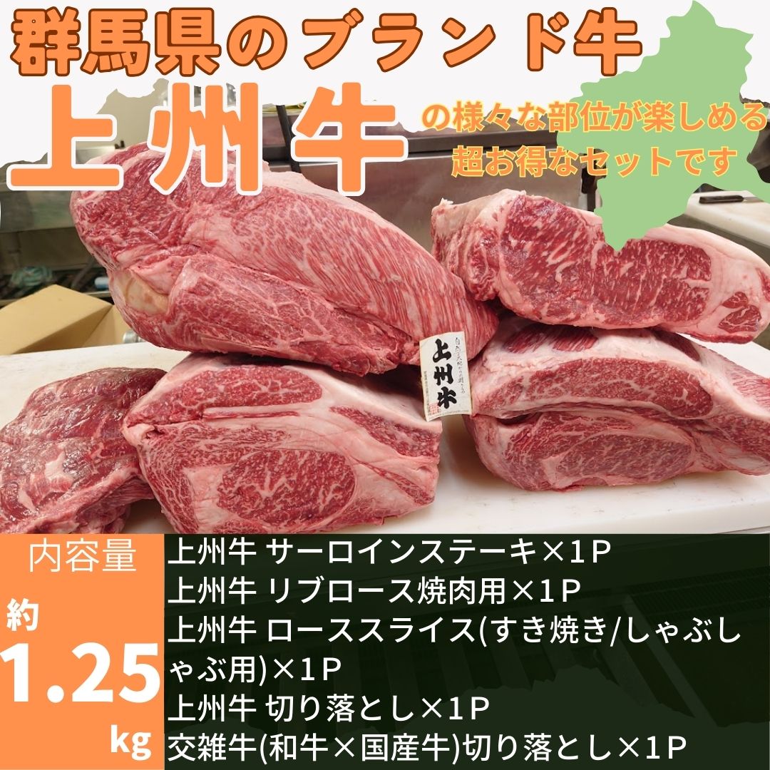上州牛 おためしセットは、群馬の豊かな自然で育まれたブランド牛「上州牛」を贅沢に味わえる特別な詰め合わせです。薄切りスライス、焼肉用スライス、切り落とし、サーロインステーキを合計1.25kgセットにしてお届けします。肉本来の旨みとやわらかな食感が特長で、ご家庭でも本格的な味わいをお楽しみいただけます。