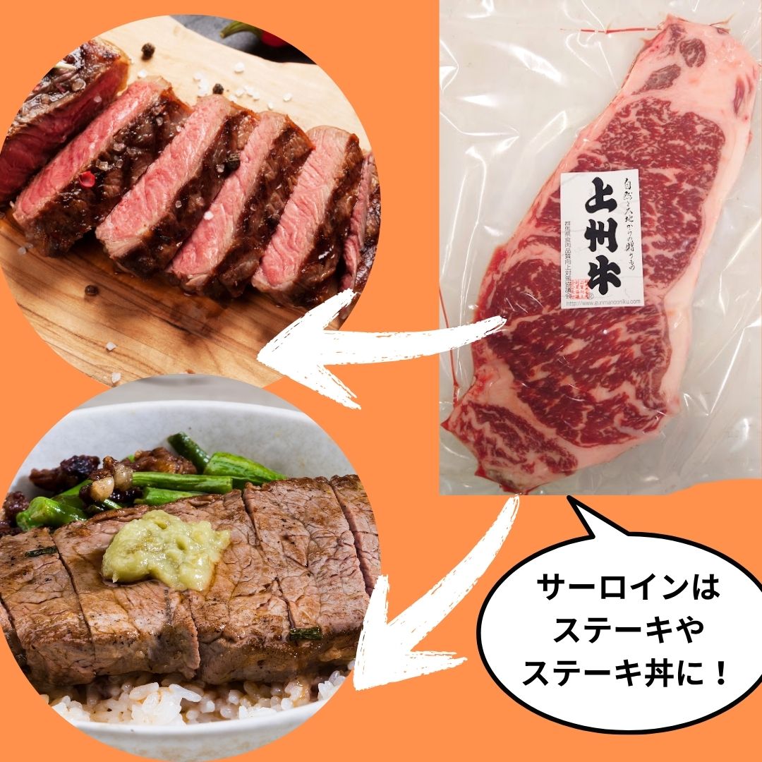 内容:薄切りスライス、焼肉用スライス、切り落とし、サーロインステーキ