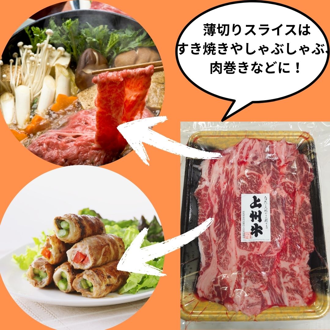 薄切りスライスはすき焼きやしゃぶしゃぶに、焼肉用スライスは鉄板焼きやバーベキューに、サーロインステーキは特別な日のメインディッシュにぴったりです。切り落としはカレーやシチュー、炒め物など日常のお料理に幅広く使え、毎日の食卓を豊かに彩ります。
