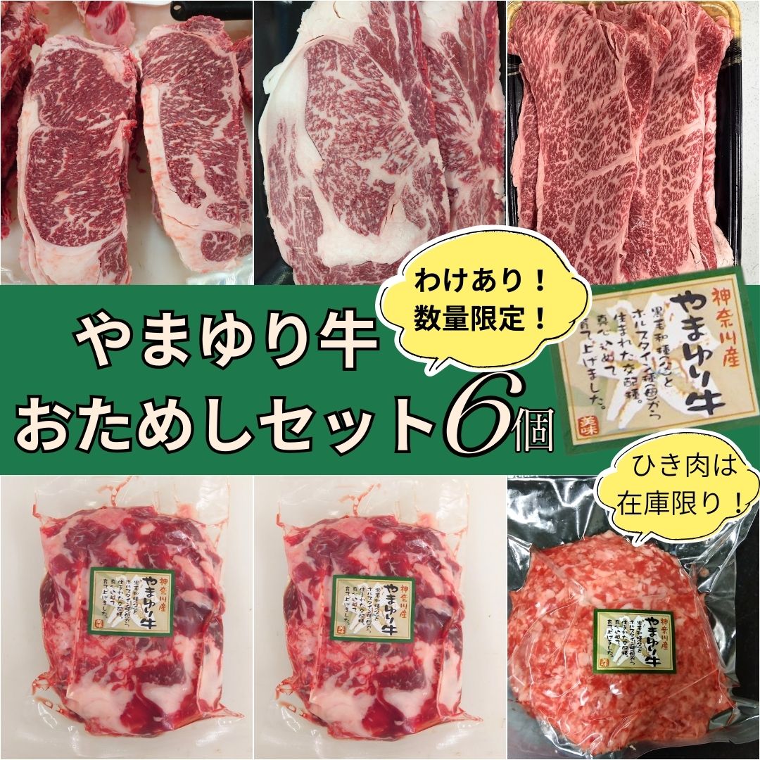 わけあり!やまゆり牛おためしセット(薄切りスライス,焼肉用スライス,切り落とし,サーロインステーキ,今だけ!ひき肉のセット)
