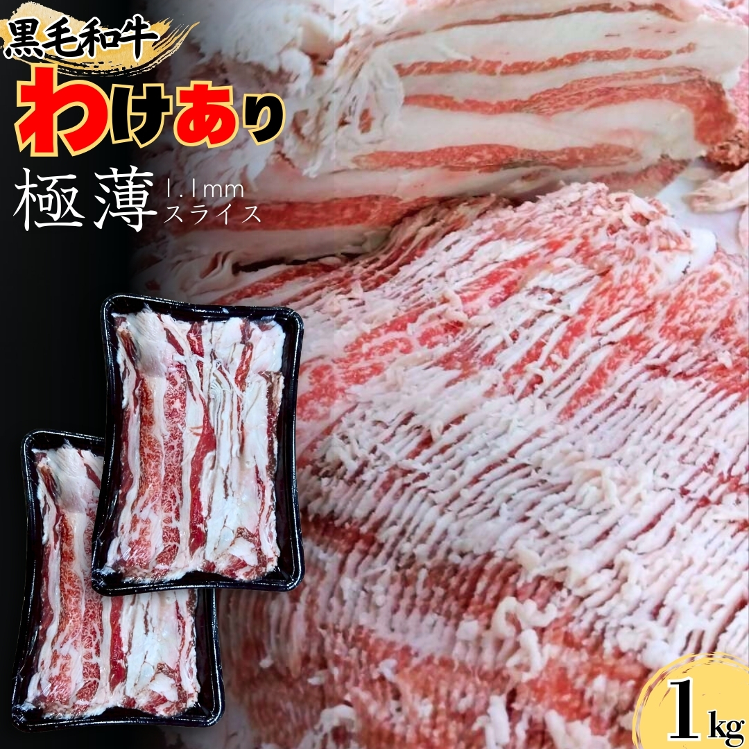 【わけあり】黒毛和牛 極薄スライス 約1.1mm 1kg(500g×2パック)